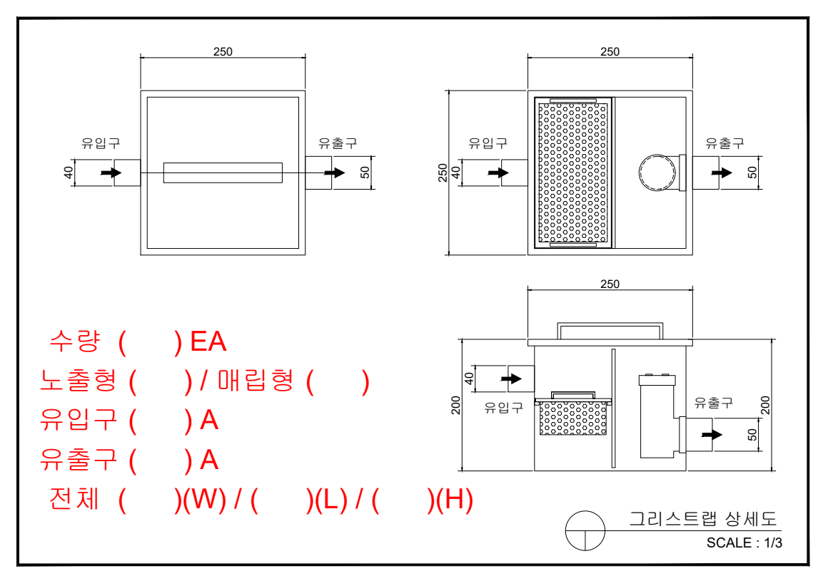 그중 GT라 불리는 그리스 트랩을 발주 넣었던 내용입니다!